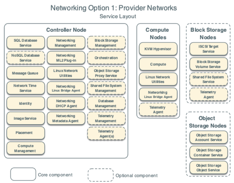 The provider networks option deploys the OpenStack Networking service in the simplest way possible with primarily layer-2 (bridging/switching) services and VLAN segmentation of networks. Essentially, it bridges virtual networks to physical networks and relies on physical network infrastructure for layer-3 (routing) services. Additionally, a DHCP service provides IP address information to instances.