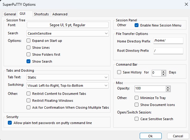 - Security 에 Allow plan test passwords on putty command line 체크