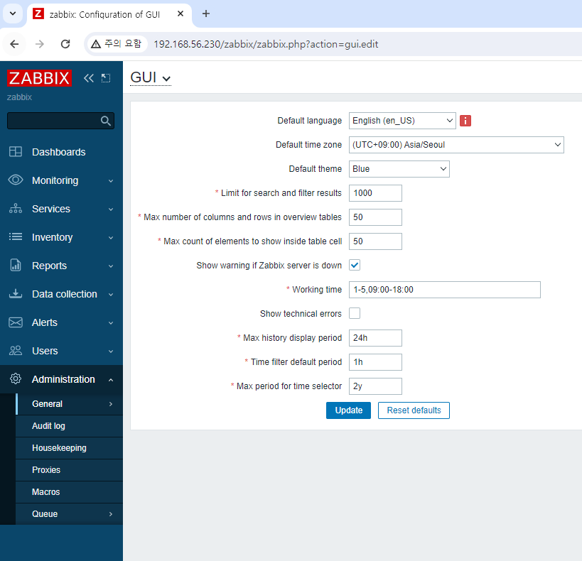 Zabbix 한글 설정 (Language 설정)