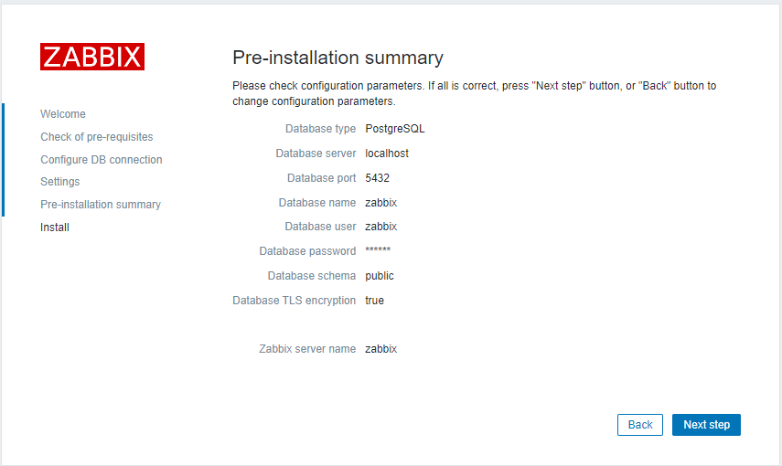 - e. Configure the database for Zabbix server