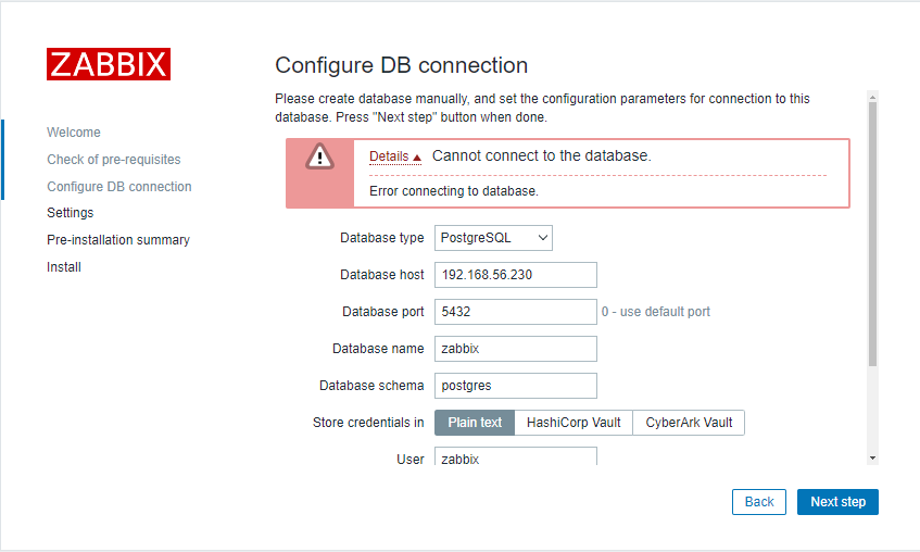 혹시 몰라서 postgres 패스워드를 zabbix으로 변경