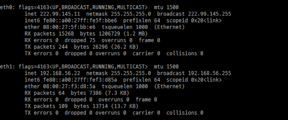 - eth1 : 192.168.56.22