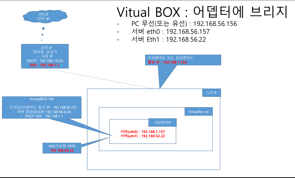 # Vitual BOX의 IP 구조 및 설정 (테스트 환경)