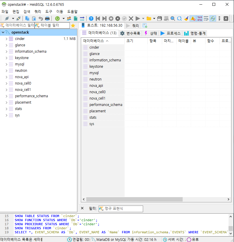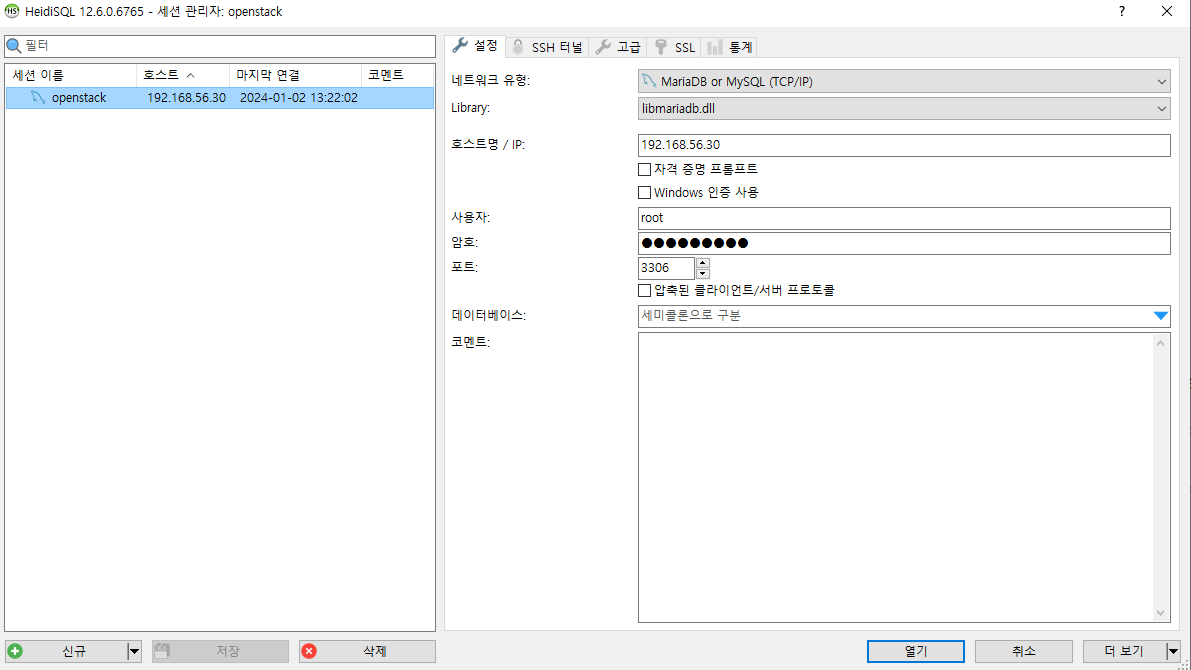 # 오픈스텍 설치후 mysql DB를 윈도우에서 접속 방법