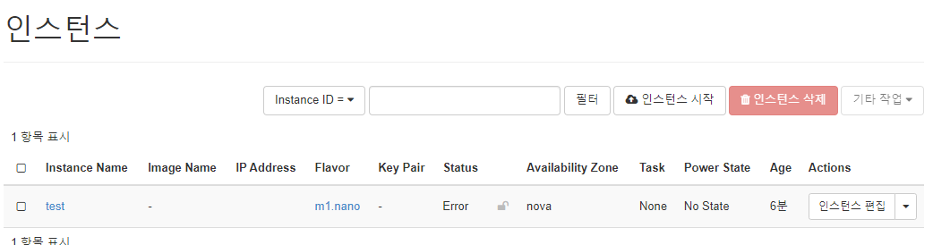 - 인스턴스 생성시 에러 (status 상태 - Error)