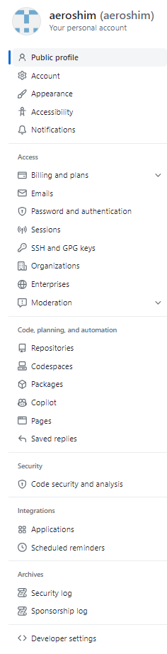 # Profile 제일 아래 Developer Setting 을 클릭합니다.