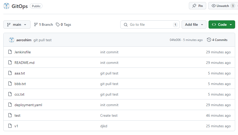 [root@m-k8s GitOps]# git commit -m "git pull test"