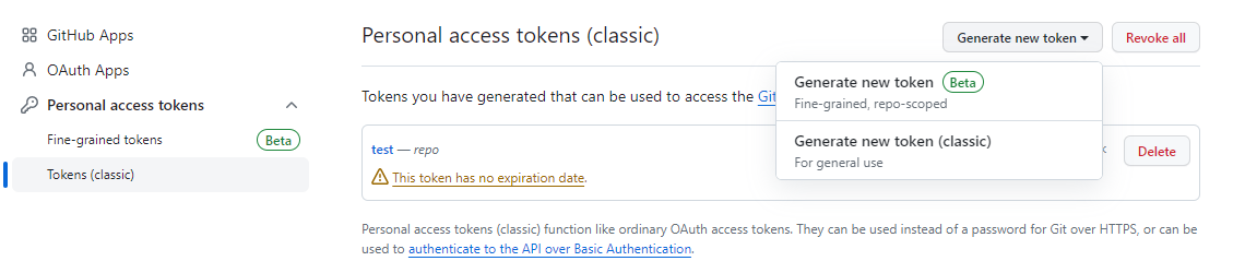 # Token 정보 확인 (ghp..... 로 시작되는 문자를 복사 )