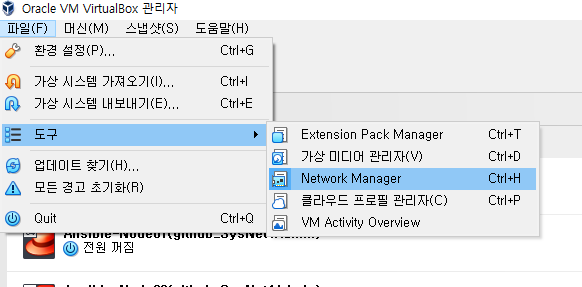 # 파일 -> 도구 - Network Manager 를 선택한다